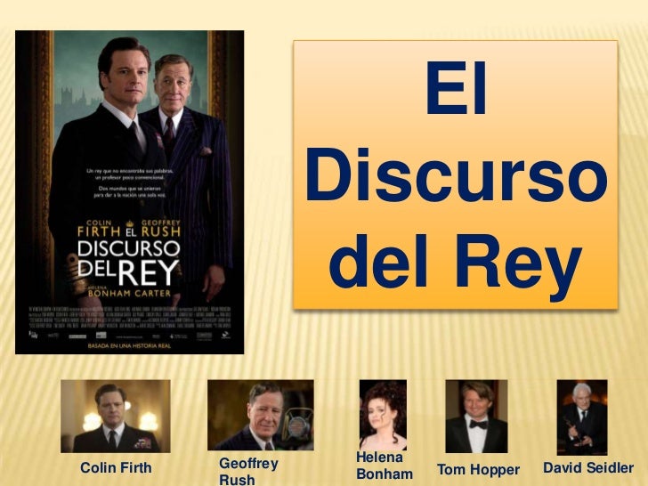 El duque George VI potencial heredero al. Película online El discurso del Rey completa en buena calidad y gratis obtenidas de servidores como Openload y Streamcloud en Castellano Latino e Inglés. Colin Firth Geoffrey Rush Helena Bonham Carter Guy Pearce.